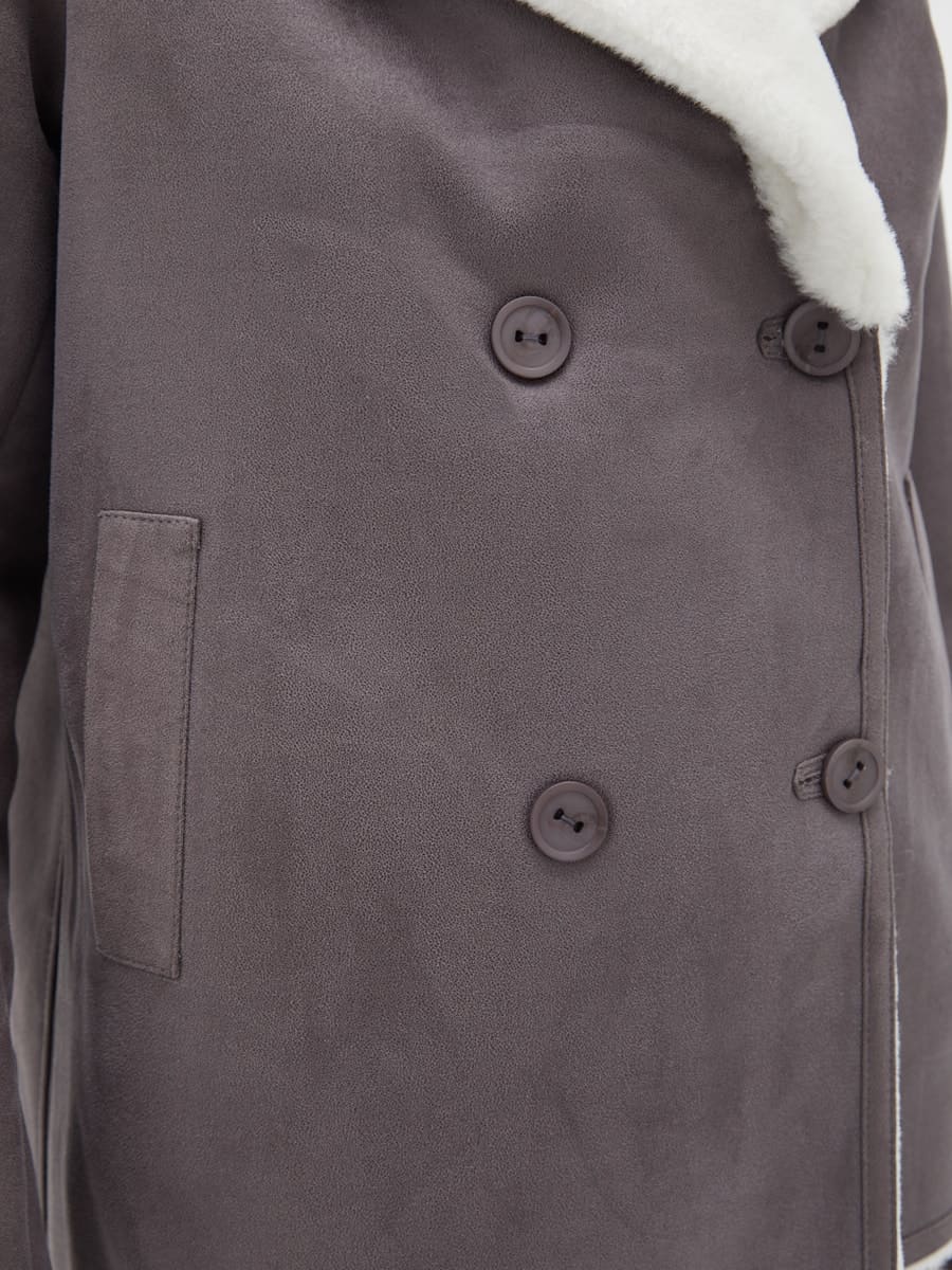 Вид ворота - английский воротник, отделка эко мех