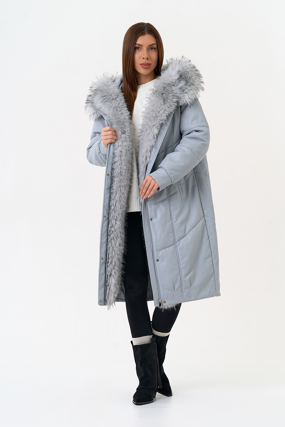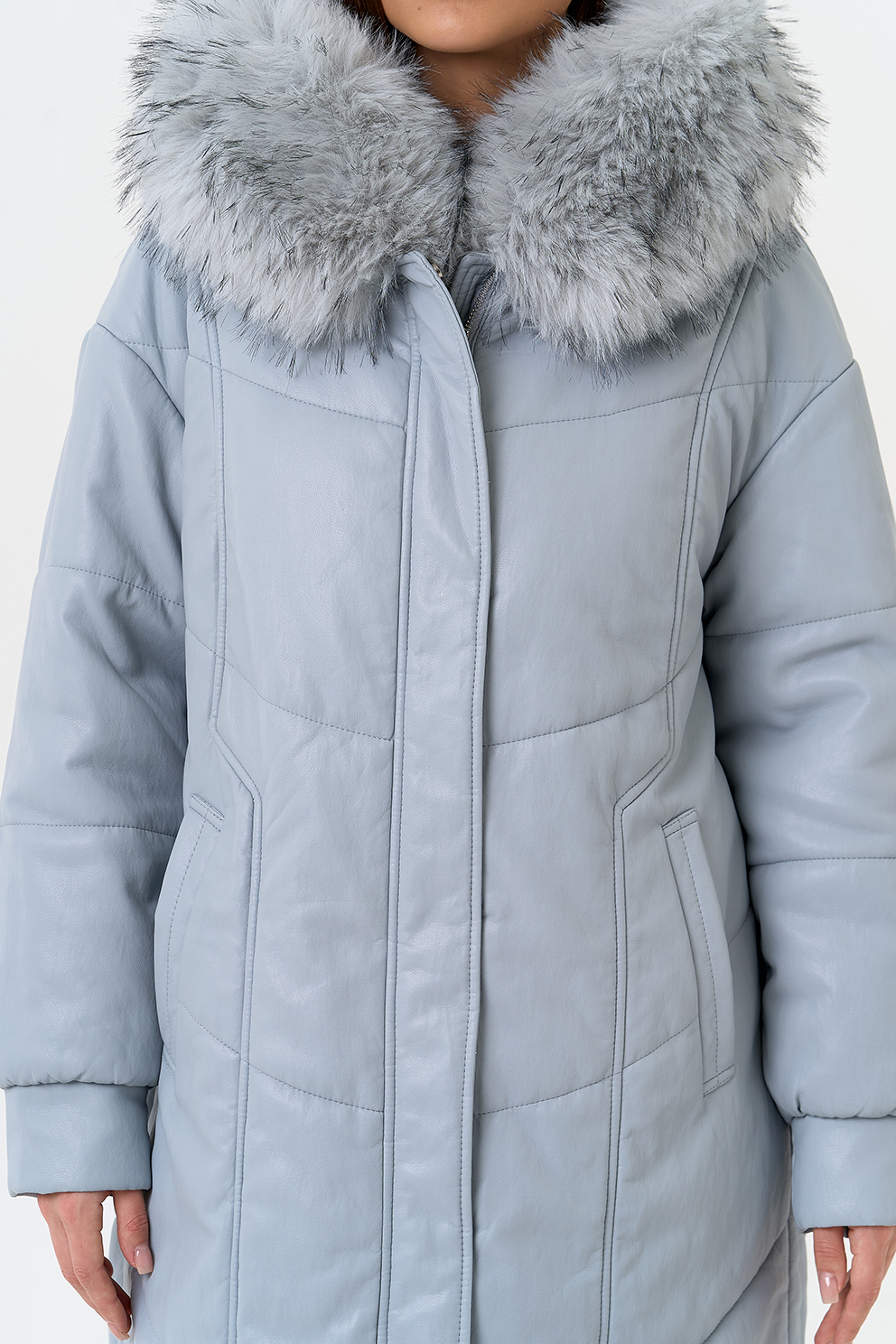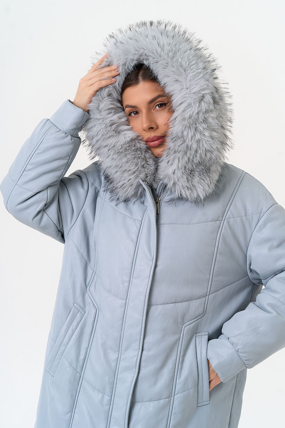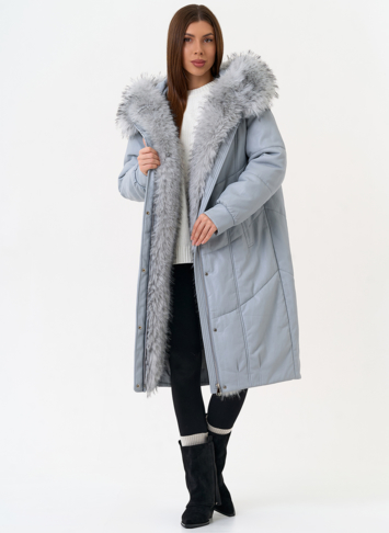 Отделка воротника - эко мех под мех енота, цвет голубой