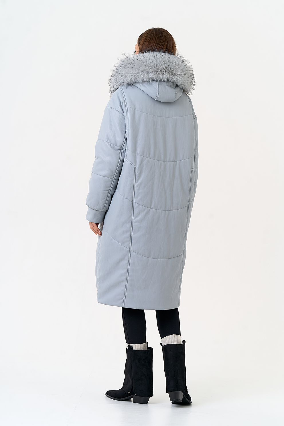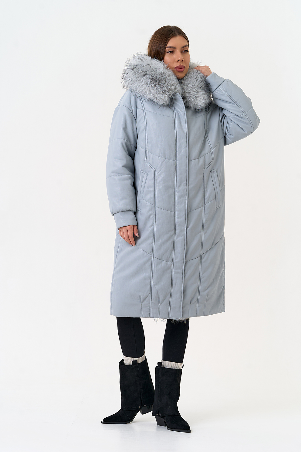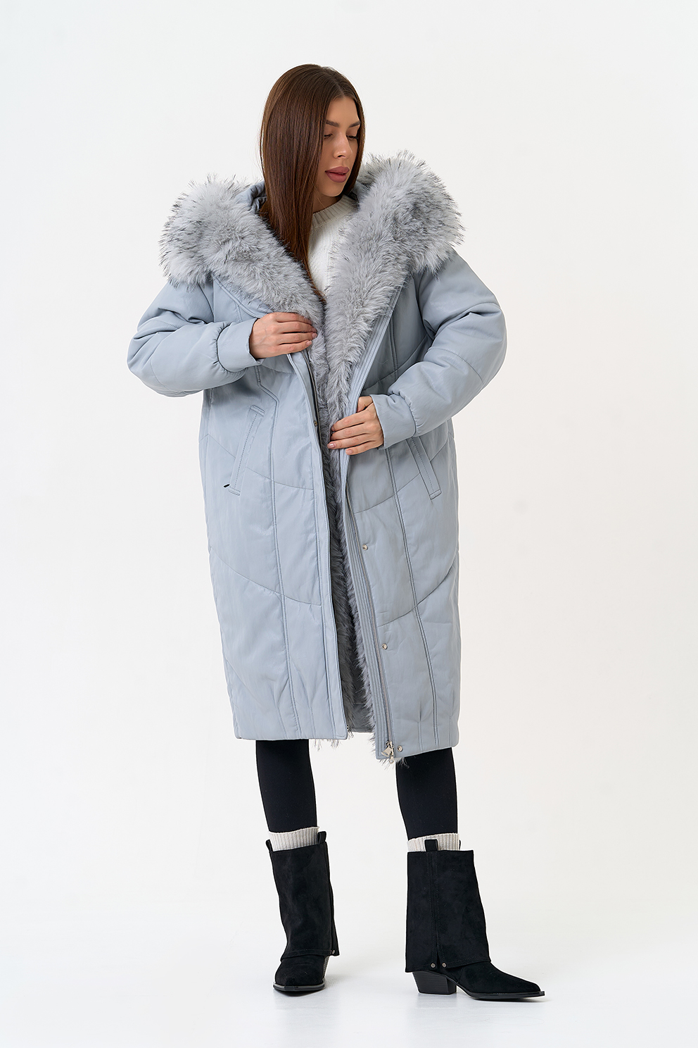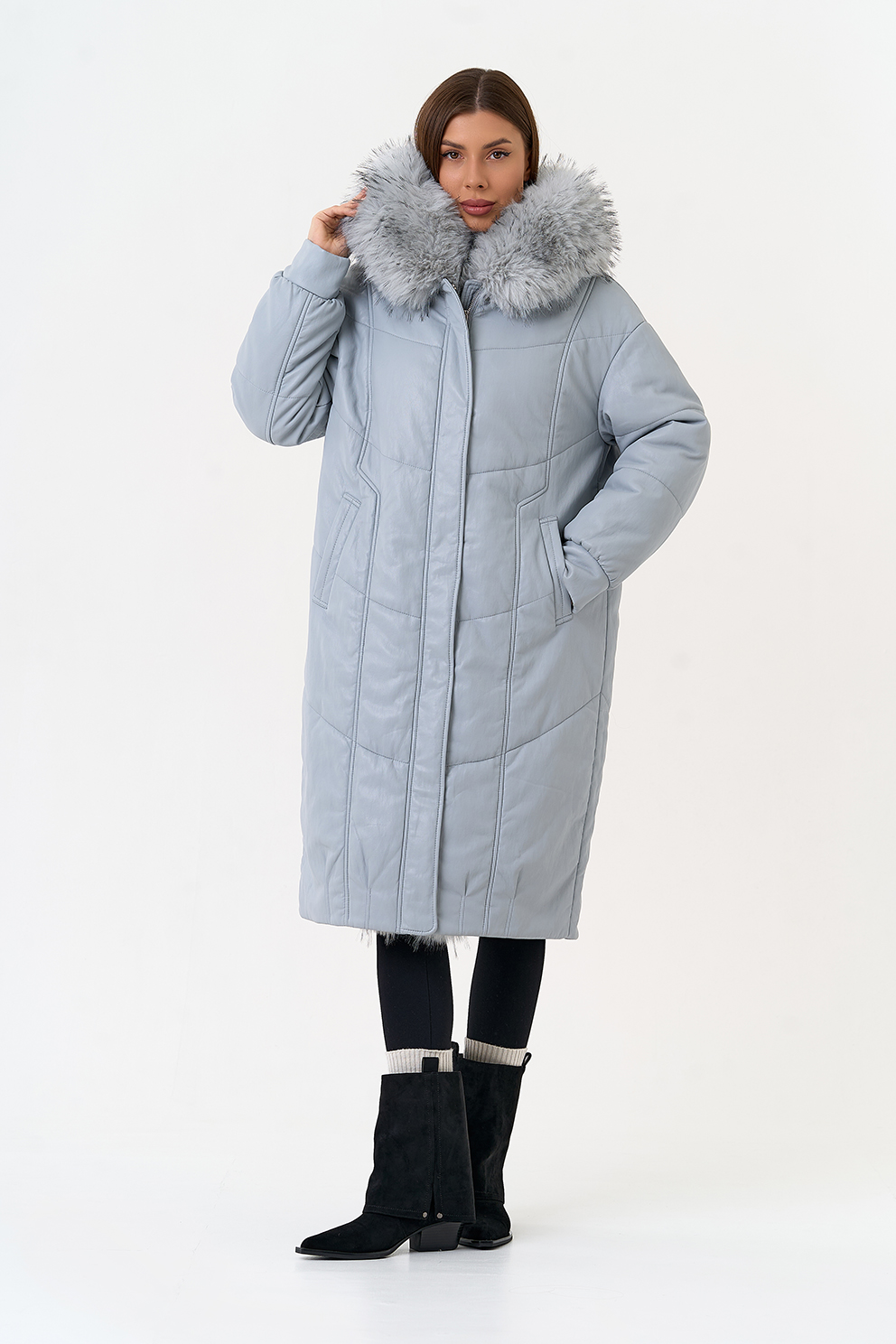 Отделка воротника - эко мех под мех енота, цвет голубой
